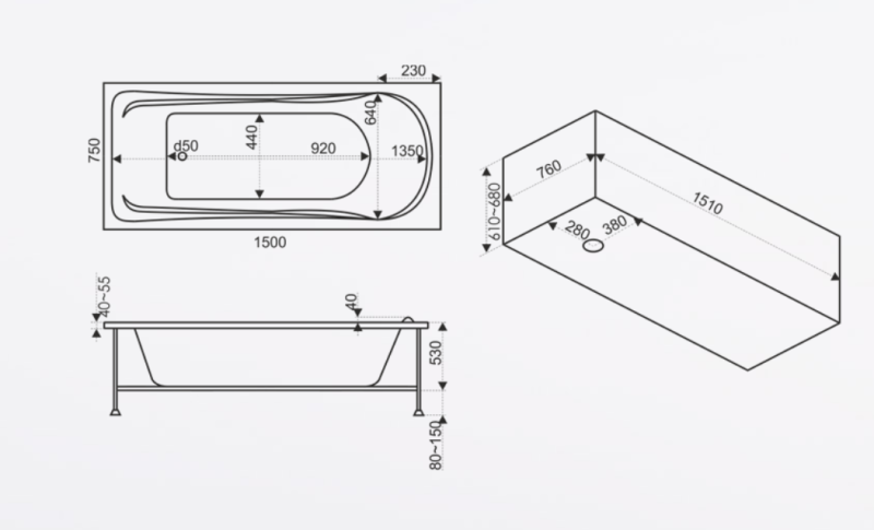 Акриловая ванна Bas Бриз 150x75 без гидромассажа купить