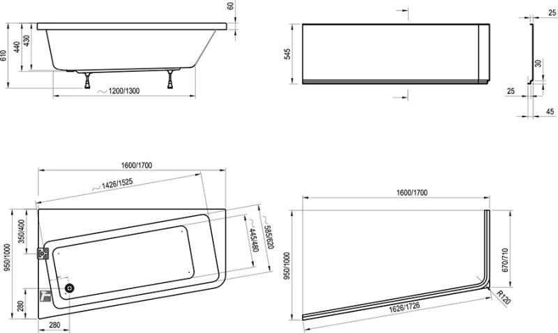 • аксессуары: передняя панель, сточный комплект для ванны