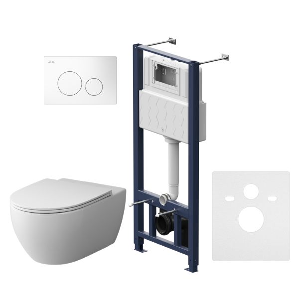 Полностью готовый к установке комплект: система инсталляции с клавишей, подвесной унитаз с сиденьем. Неразборная рама из стального профиля выдерживает нагрузку до 400 кг. Полностью изолированный бачок с качественной двухрежимной смывной арматурой укомплектован пневматической клавишей в цвете белый. В комплекте все необходимые патрубки и крепления, а также прокладка между унитазом и стеной - звукоизоляция.Подвесной унитаз Awe FlashClean имеет одну из самых востребованных форм в керамике - дизайн в стиле organic, вдохновленный природой, идеально сбалансированные пропорции. Благодаря скрытым креплениям и скрытому фановому выходу уход за керамикой удивительно легкий. Эффективный каскадный смыв гарантирует идеальную чистоту с первого раза и 100%ное омывание поверхности унитаза.В комплекте быстросъемное сиденье из дюропласта с функцией микролифт. Механизм плавного опускания, рассчитанный на 100 000 закрываний - комфорт в использовании, механизм быстрого снятия - легкость в уходе за сиденьем и керамикой.