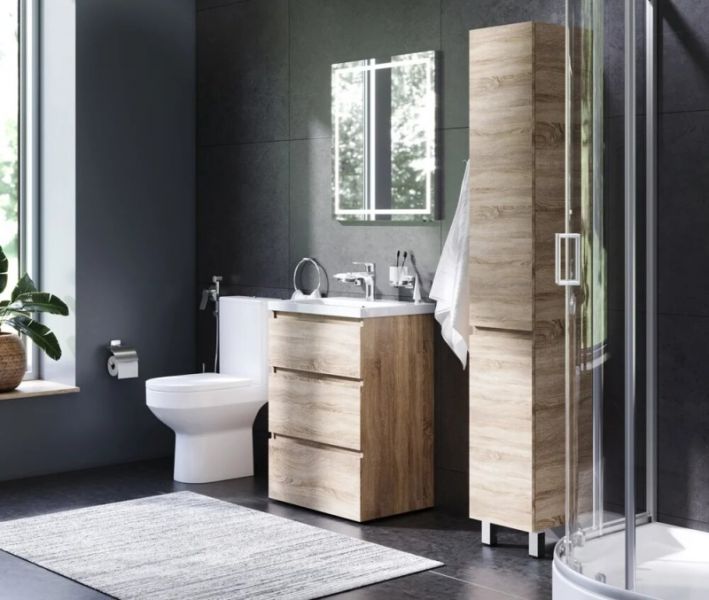 Тумба под раковину:Компактное решение: узкая база с глубокими ящиками.