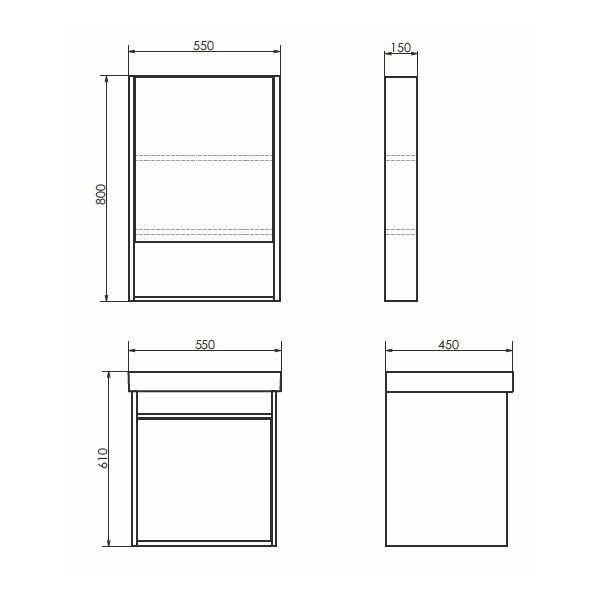 Габариты (ШхВхГ): 550*800*150 мм