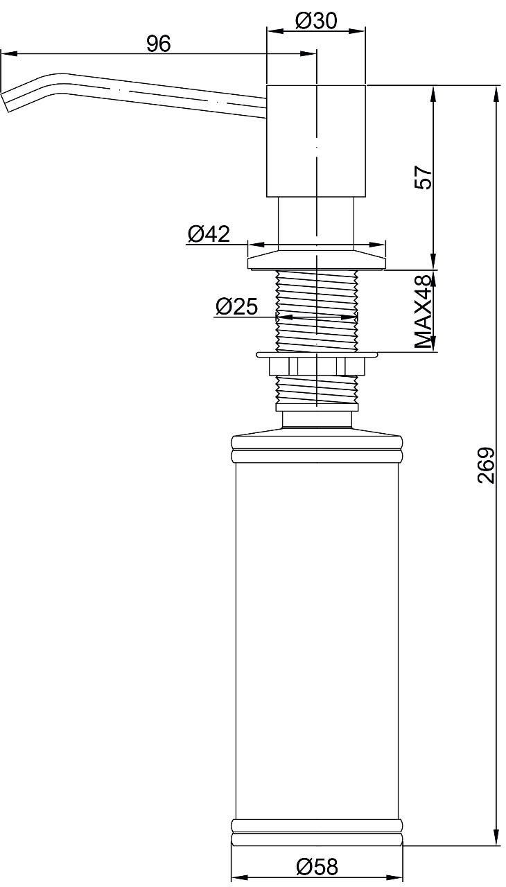Дозатор для кухни и ванной, артикул D002-418Дозатор для кухни или ванной серии Rein, встраиваемый, объемом 350 мл, матовая поверхность, изготовлен из латуни и пластика.