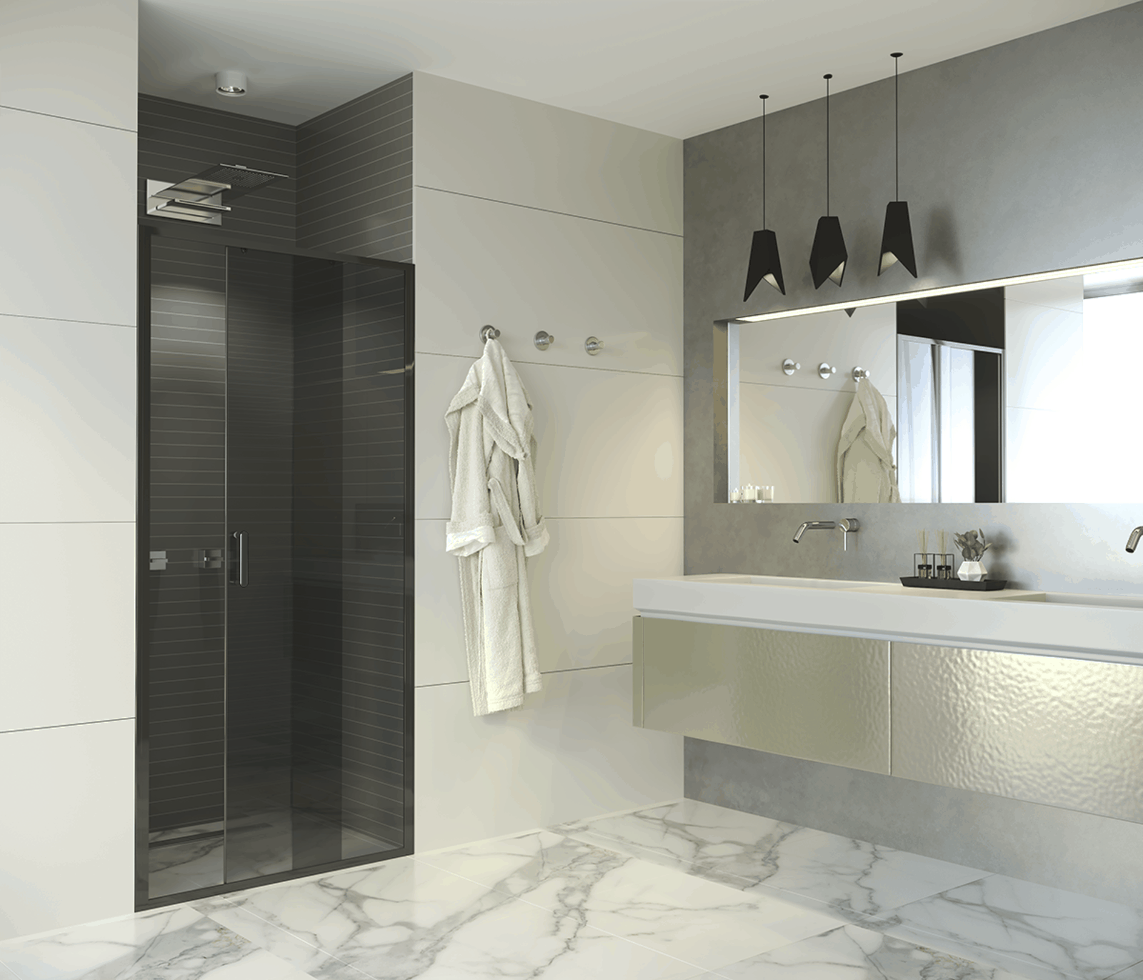 • Дверь может быть дополнена боковой стенкой (SG) для преобразования в душевой уголок.