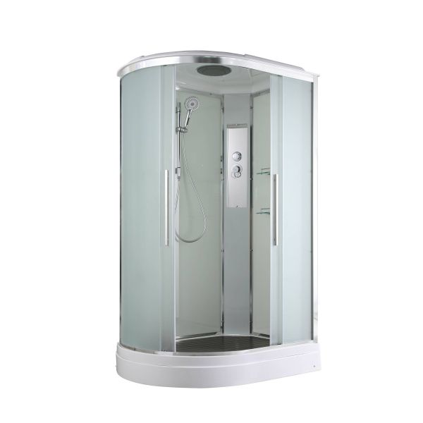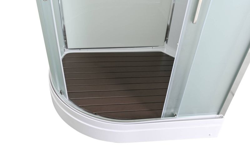 Стильная душевая кабина AvaCan EM2811R сочетает в себе высокую функциональность, практичность и надежность. При изготовлении применяется безопасное закаленное стекло толщиной 5 мм (матовое), надежно фиксируемое алюминиевым профилем. Сборка без силикона (увеличивает срок службы), внутренняя сборка(облегчает установку и ревизию; позволяет установить в ограниченном пространстве), смеситель резьбовой (без хомутов). Съемный экран поддона (позволяет осуществлять ревизию сифона). Цвет профиля  хром. Двойные металлические ролики дверей (увеличивают срок службы).В комплекте : душевая штанга, две полочки , тропический (верхний) душ, арома-лейка с витамином С (картридж съемный),полимерная вставка в поддон(имитация дерева),сифон, ручки дверей из нержавейки , двойные ролики .