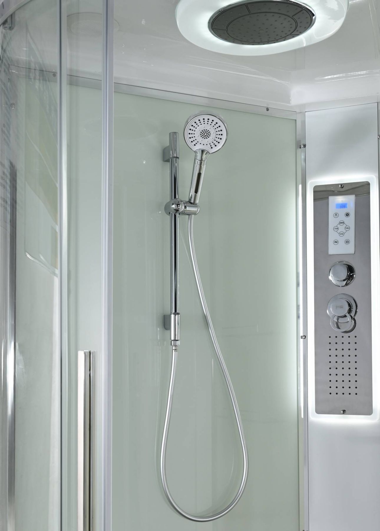 Стильная душевая кабина AvaCan сочетает в себе высокую функциональность, практичность и надежность. При изготовлении применяется безопасное закаленное стекло, надежно фиксируемое алюминиевым профилем.Профиль сделан из алюминия повышенной прочности. Сборка без силикона (увеличивает срок службы, защищает от протечек), внутренняя сборка (облегчает установку и ревизию; позволяет установить в ограниченном пространстве и обойтись без демонтажа других сантехнических приборов), смеситель резьбовой (без хомутов). Съемный экран поддона (позволяет осуществлять подключение и ревизию сифона).Двойные металлические ролики дверей (распределение нагрузки на два ролика, увеличивают срок службы). Душевая штанга(позволяет регулировать по высоте ручную лейку), ручная арома-лейка с витамином С (картридж в комплекте,есть возможность замены или удаления картриджа), полочки(из стекла, с ограничителем), сифон с гидрозатвором, сенсорный пульт управления с функциями: блютуз, LED подсветка, радио, вытяжка, гидромассаж спины, тропический (верхний) душ.