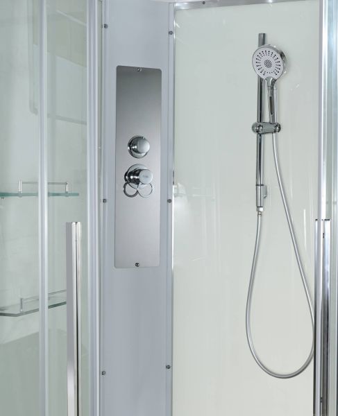 Стильная душевая кабина AvaCan сочетает в себе высокую функциональность, практичность и надежность. При изготовлении применяется безопасное закаленное стекло, надежно фиксируемое алюминиевым профилем. Профиль сделан из алюминия повышенной прочности. Сборка без силикона (увеличивает срок службы, защищает от протечек), внутренняя сборка (облегчает установку и ревизию; позволяет установить в ограниченном пространстве и обойтись без демонтажа других сантехнических приборов), смеситель резьбовой (без хомутов). Съемный экран поддона (позволяет осуществлять подключение и ревизию сифона).Двойные металлические ролики дверей (распределение нагрузки на два ролика, увеличивают срок службы). Душевая штанга(позволяет регулировать по высоте ручную лейку), ручная арома-лейка с витамином С (картридж в комплекте,есть возможность замены или удаления картриджа), полочки(из стекла, с ограничителем), сифон с гидрозатвором.