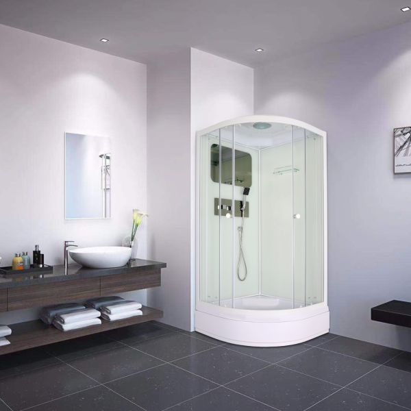 БЕЗСИЛИКОНОВАЯ СБОРКАДушевая кабина Parly BMM86Размер: 85х85х215 смКомпактная светлая кабина экономит место в ванной и визуально увеличивает пространство. Отсутствие центрального столба позволило увеличить внутреннюю площадь душевой зоны.Достоинства:Прозрачное закаленное стекло, 4 мм. Полотно устойчиво к случайным ударам. В случае битья рассыпается на мелкие грани с тупыми концами.Стенки из закаленного белого стекла, 4 мм.Профиль: белый, алюминиевый. Не подвержен коррозии.Поддон: средний 26 см, полукруглый. Высота поддона предупреждает разбрызгивание воды и позволяет замачивать вещи.Сборка без применения силикона. Конструкция душевой кабины обеспечивает слив воды внутрь поддона. Сам поддон по всему периметру оснащен водонепроницаемым бортиком высотой 2 см, который исключает перелив воды за пределы душевой зоны.Комплектация: полка, большое встроенное зеркало, верхний душ ТРОПИК, ручной душ, сифон Внимание! Производитель оставляет за собой право вносить изменения в конструкцию и комплектацию моделей без предварительного уведомления!