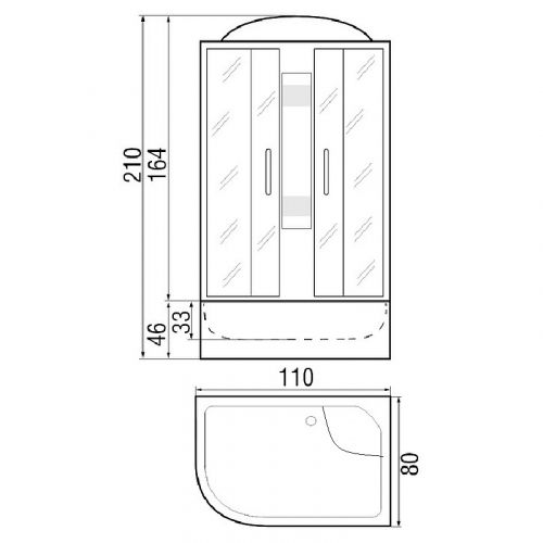 ~ крыша ~ верхний душ ~ верх.свет ~ динамик ~ вентилятор ~ цент.стойка ~ пульт упр-я ~ радио ~ телефон ~ смеситель с переключ. режимов ~ 3 г/м форс. ~ штанга ~ ручной душ 3х режимн. ~ зеркало ~ полочка ~ сиденье ~ поддон п/кр. выс.с/сид-ем с/съем.экр. (Н=46см) ~ сифон