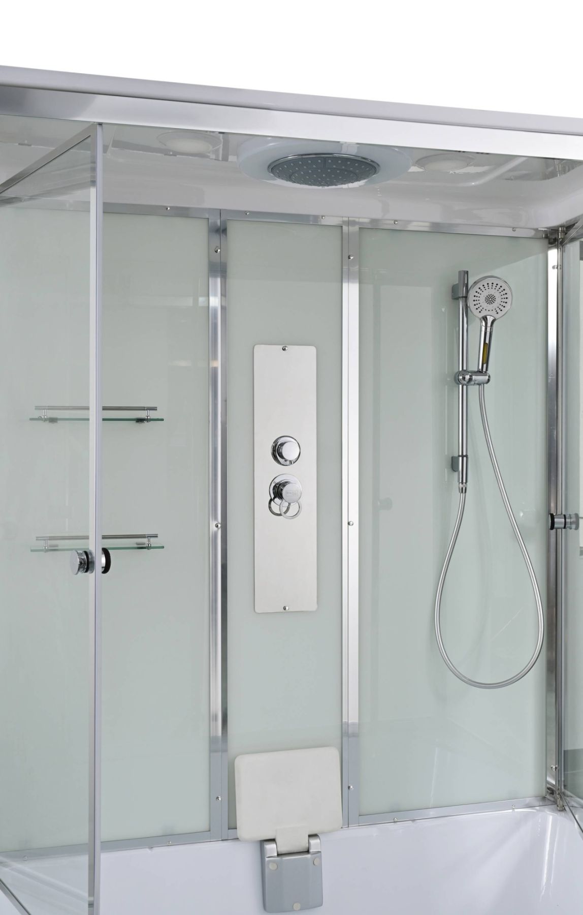 Стильная душевая кабина AvaCan сочетает в себе высокую функциональность, практичность и надежность. При изготовлении применяется безопасное закаленное стекло, надежно фиксируемое алюминиевым профилем. Профиль сделан из алюминия повышенной прочности. Сборка без силикона (увеличивает срок службы, защищает от протечек), внутренняя сборка (облегчает установку и ревизию; позволяет установить в ограниченном пространстве и обойтись без демонтажа других сантехнических приборов), смеситель резьбовой (без хомутов). Съемный экран поддона (позволяет осуществлять подключение и ревизию сифона).Двойные металлические ролики дверей (распределение нагрузки на два ролика, увеличивают срок службы). Душевая штанга(позволяет регулировать по высоте ручную лейку), ручная арома-лейка с витамином С (картридж в комплекте,есть возможность замены или удаления картриджа), полочки(из стекла, с ограничителем), сифон с гидрозатвором.