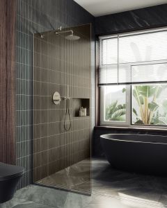 Стеклянная душевая перегородка в профиле - стильный и функциональный элемент, предназначенный для разделения пространства в ванной комнате. Перегородка изготовлена из закаленного стекла, обеспечивающего безопасность и долговечность. Профиль из анодированного аллюминия добавляет конструкции прочности и устойчивости. Благодаря разнообразию размеров и дизайнов, стеклянная душевая перегородка идеально впишется в любой интерьер. Закаленное стекло , цвет бронза , толщина 8 мм , 1950*790-1 шт.