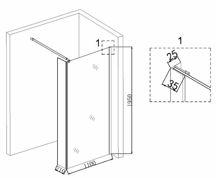Это решение экономит место в ванной комнате. Также с помощью неподвижной стенки можно, например, отгородить стиральную машину, шкаф, раковину или унитаз.