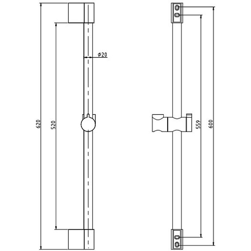 Душевая штанга Rav Slezak PD0015CMAT черныйPD0015CMAT Душевая штанга 60 см d20 мм., металл/пластик, ЧЕРНЫЙ МАТОВЫЙ