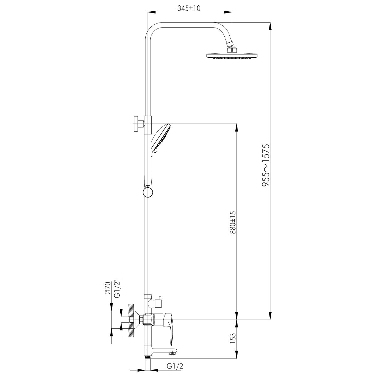 Душевая система Rossinka S35-45 для душа с регулируемой высотой штанги и лейкой Тропический дождь. Аксессуары в комплекте (шланг 1,5 м, 5-функциональная лейка с функцией легкой очистки, регулируемое по высоте крепление для лейки).