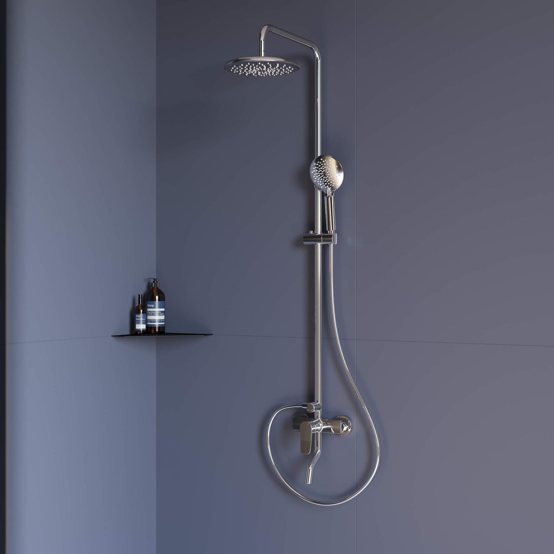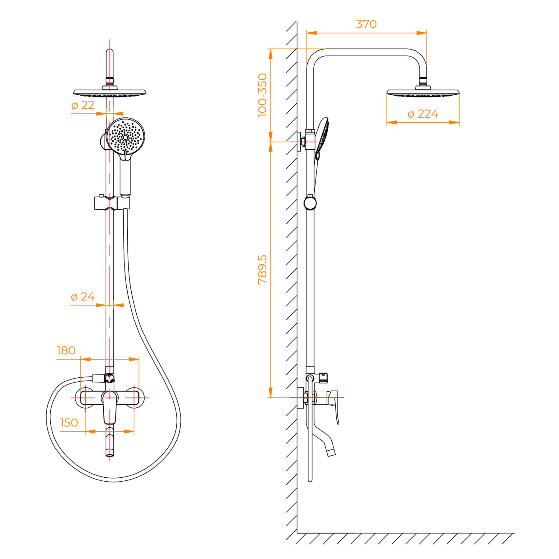 • Стальная штанга с регулировкой высоты головного душа