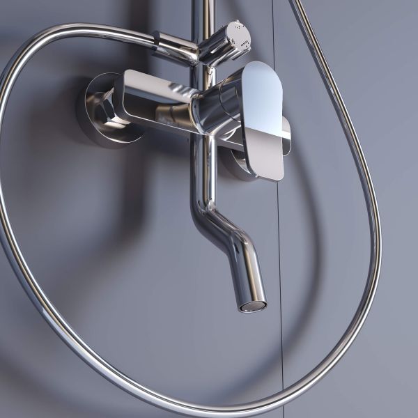 • Головной душ из высокопрочного ABS-пластика оснащён со шарнирным креплением, что позволяет выбрать необходимый угол направления воды;