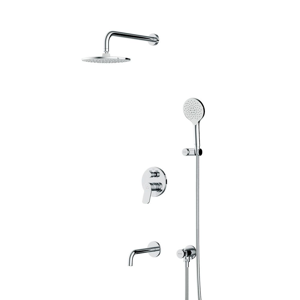 Набор встроенного оборудования X-Joy - идеальное решение для вашей ванной комнаты. Встроенный механизм освобождает ванную комнату от лишних деталей  превращая пространство в идеальное место для себя. Набор включает в себя: верхний тропический душ 22 см, ручной душ, держатель ручного душа, излив и смеситель.