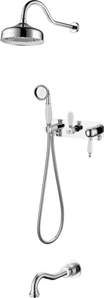 Душевой комплект Boheme Tradizionale Chromo 268 С ВНУТРЕННЕЙ ЧАСТЬЮ будет превосходно гармонировать с вашим интерьерным решением и придаст ему дополнительные возможности. Душевые комплекты Boheme включают в себя все необходимое для создания идеального душевого пространства. Благодаря оптимальному диаметру душевой лейки Tradizionale Chromo в 7.7 см, вы получите полное наслаждение от принятия душа. Душ Boheme 268 имеет 1 режим настройки потока струи. Диаметр верхнего (тропического) душа, которым оснащен 268 составляет 20.8 см.Душевой комплект Boheme Tradizionale Chromo производится из высококачественных материалов (латунь, кристаллы Swarovski), с отсутствием вредных примесей. Основной цвет исполнения Tradizionale Chromo 268 – хром, идеально подходящий к душевой зоне выполненной в стиле ретро. Марка Boheme создает душевые системы отменного качества, страной родиной бренда, является Италия. Душевой комплект Boheme Tradizionale Chromo 268 С ВНУТРЕННЕЙ ЧАСТЬЮ правильное решение в оснащении ванной комнаты.
