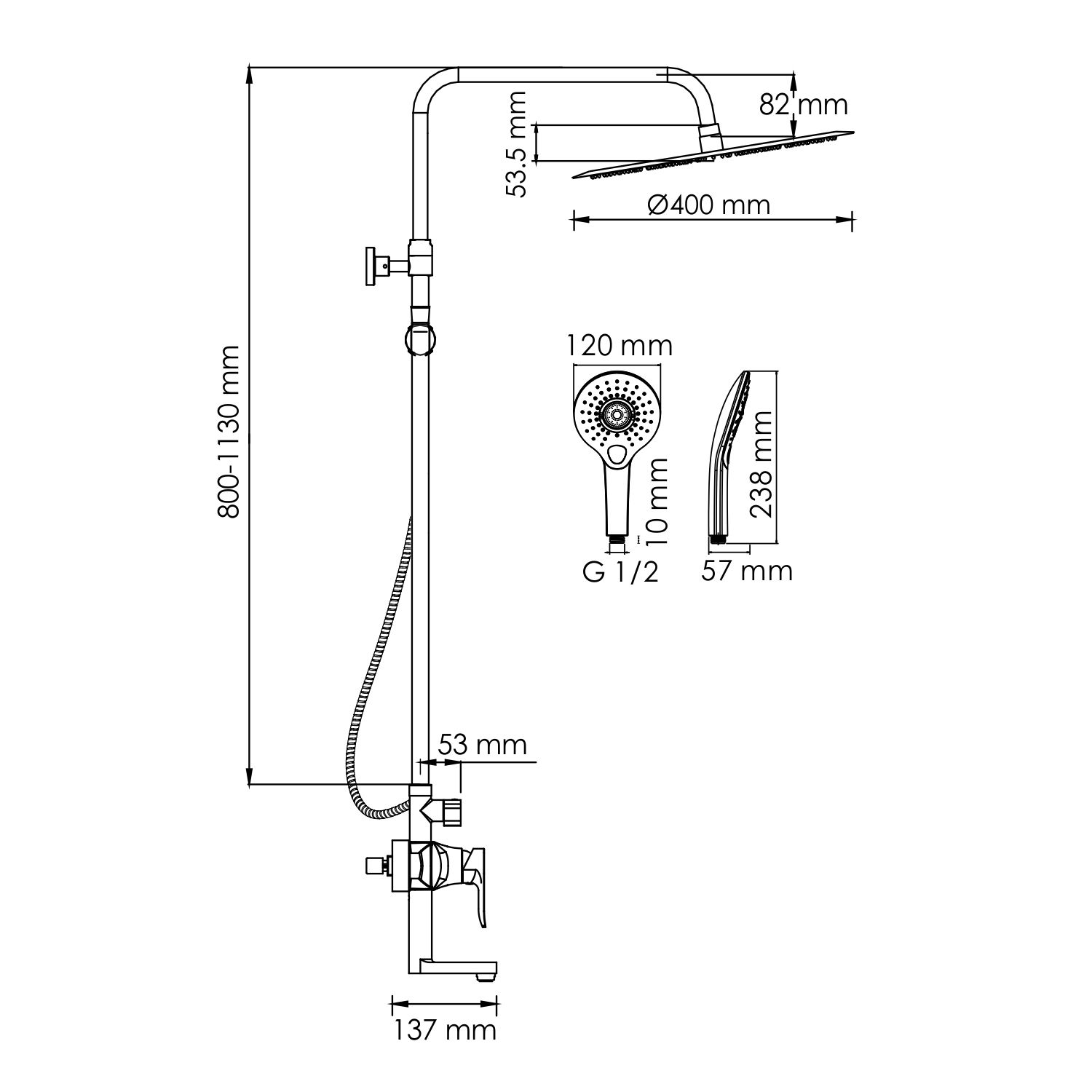 - Размер верхнего душа, см:40