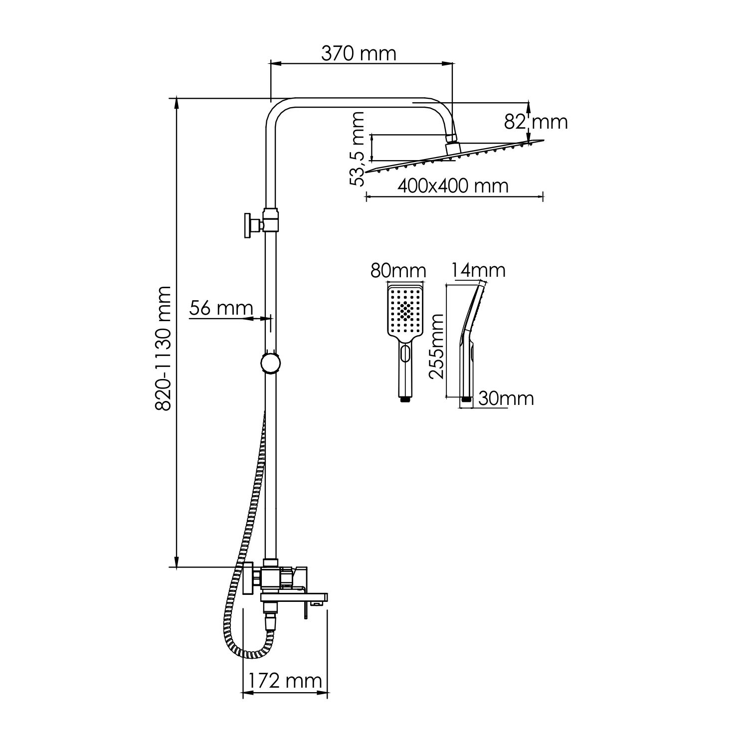 - Размер верхнего душа, см:40