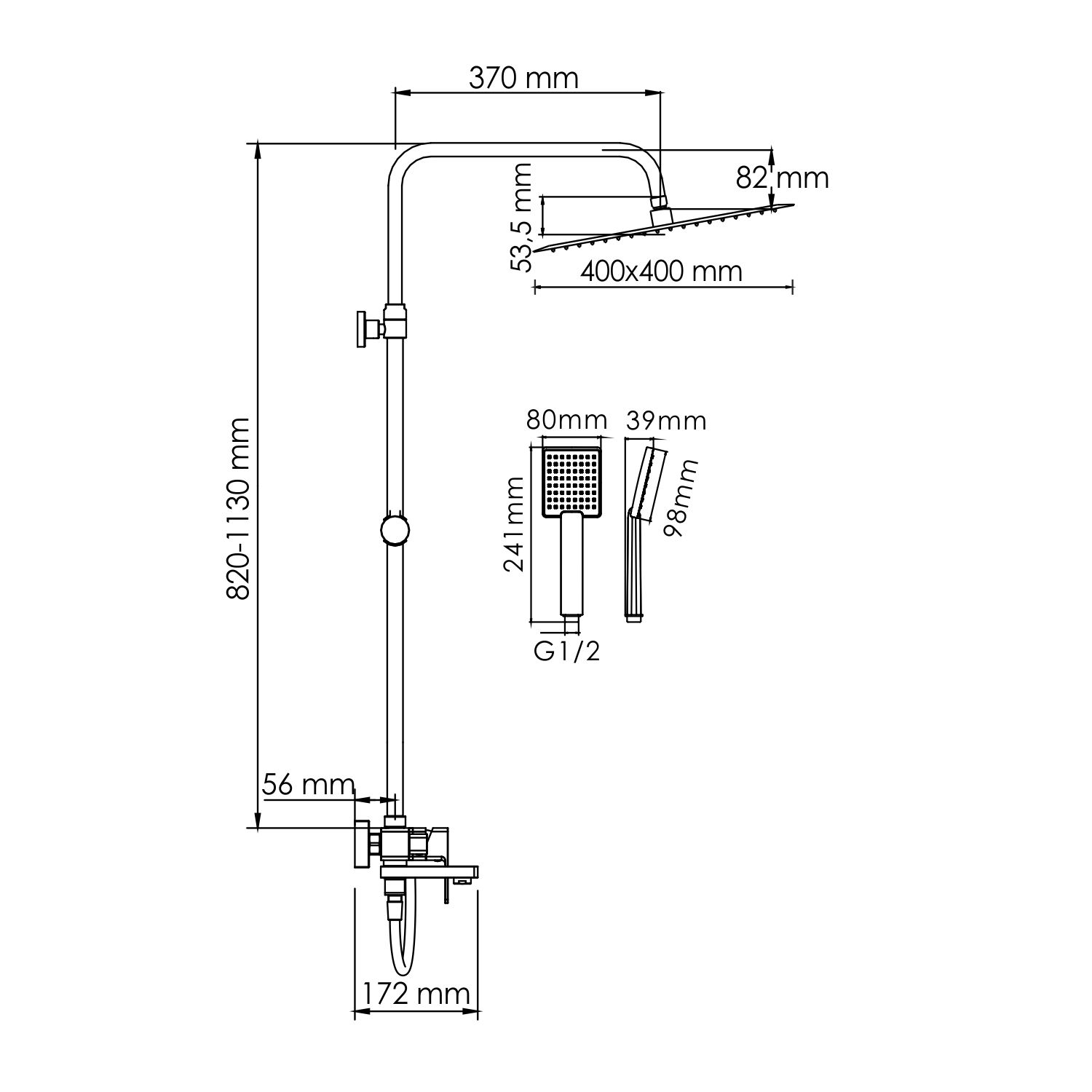 - Размер верхнего душа, см:40