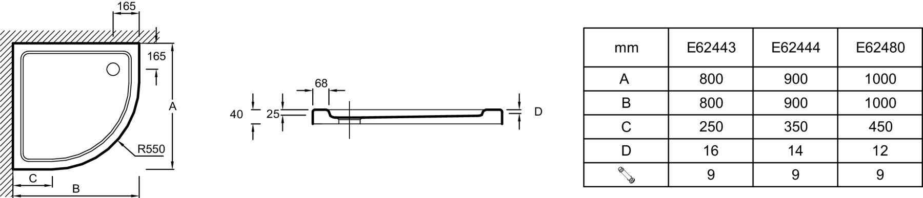 Форма:четверть круга