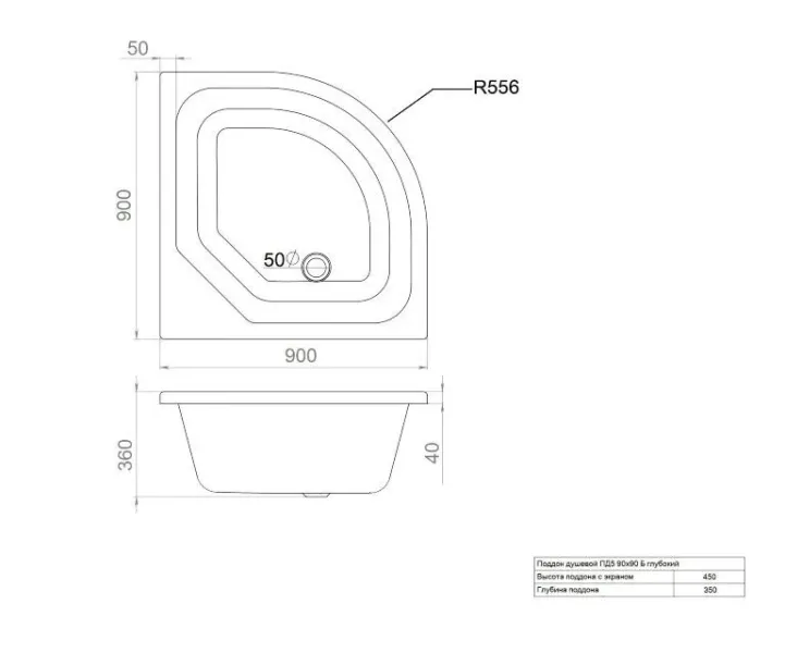• Высота поддона 450мм