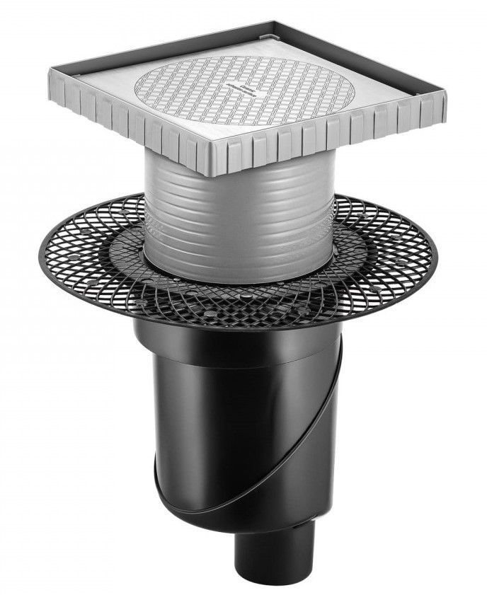 Решетка под плитку, нержавеющая сталь AISI 304Горловина трапа, пластикФланец трапа с переходником, РРМонтажная заглушка, PPСамопромывной S-образный сифон PP:вертикальный выпуск D50/105 H50, пропускная способность 48л/мин, монтаж 360°Монтажный ключ, пластик