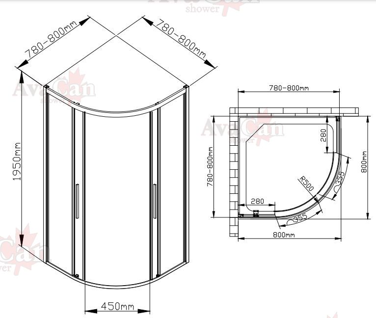 - Душевой уголок AvaCan HB 80 MT