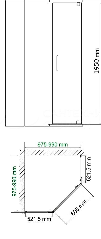 распашная дверь с магнитным замком Soft close закрывается плотно, вода не просачивается сквозь щель; регулируемые пристенные профили позволяют установить стекла к неровным стенам;
