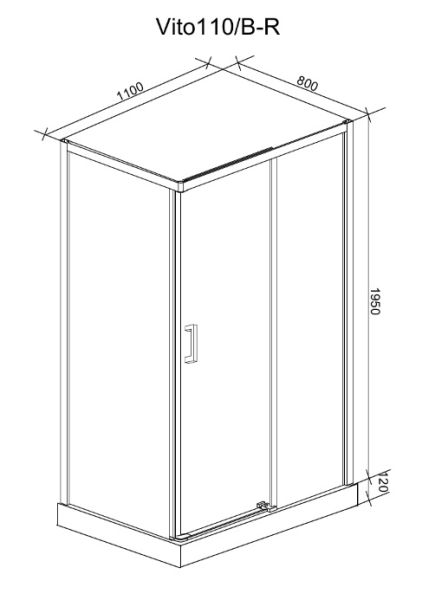 Душевой уголок Ceruttispa Vito110B-R без поддонаРазмеры без поддона: 108х78х195 смРазмер:110х80х195 см*Прозрачное стекло придает уголку визуальную легкость. Сочетание черного и хромированного профиля подчеркивает современный дизайн модели.Достоинства:Закаленное стекло 6 мм ударопрочное и травмобезопасное. Прозрачное полотно не прихотливо в уходе.Раздвижная дверь на двойных металлических роликах Doppi ходит плавно и бесшумно.Ручка Acciaio puro из чистой стали не подвержена коррозии.Правосторонний монтажМагнитный замок Soft close обеспечивает плотное смыкание створок и не дает воде просочиться наружу.Наличие регулируемых пристенных профилей для выравнивания кривых стен.Быстрая сборка Quick staple (без использования силикона).Приобретается отдельно: поддон QR110 110х80х12, сифон. * длина и ширина указаны с учетом поддона