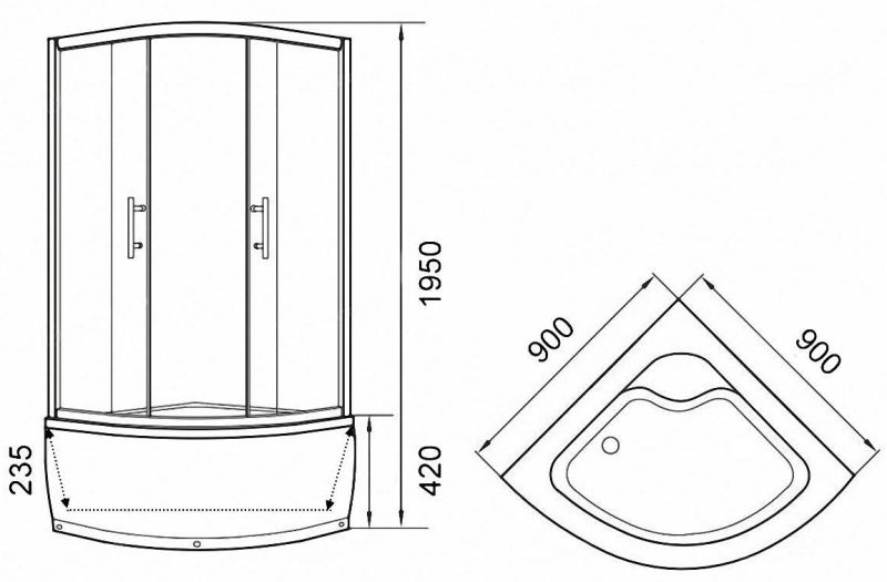 Уголок ZF90 душевой PARLY с поддоном (90х90х195)Размер: 90х90х195 смКомпактный уголок с высоким поддоном – находка для семей с детьми. Поддон можно использовать как ванночку для купания детей и животных, для замачивания постельного.Достоинства: