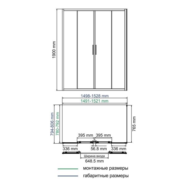 Душевой уголок Wasserkraft Lippe 45S 45S47 150х80 см хром