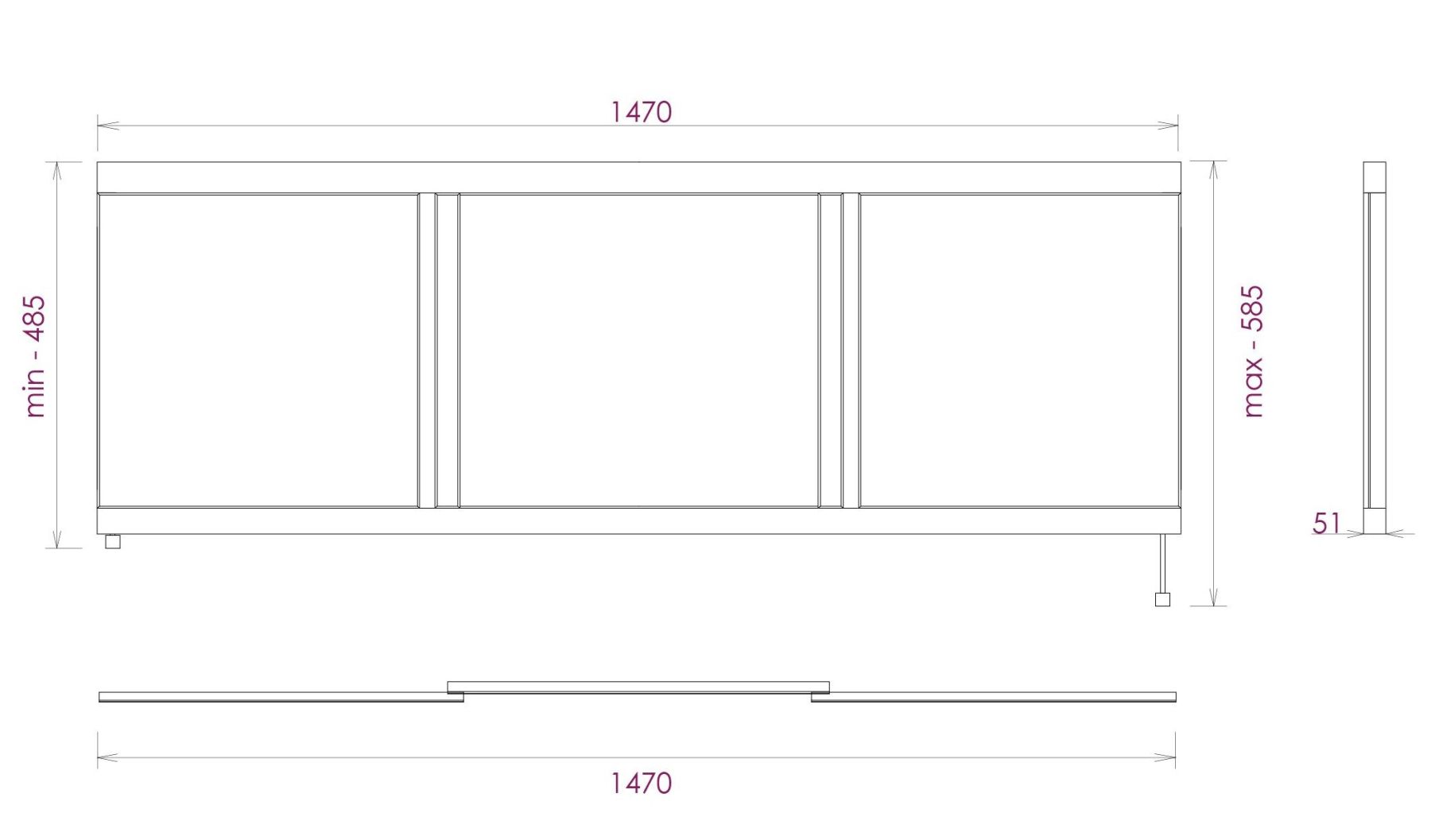 Ножки позволяют регулировать экран по высоте от 52 до 60 см, благодаря этому экран является универсальным и впишется в интерьер любой ванной комнаты.