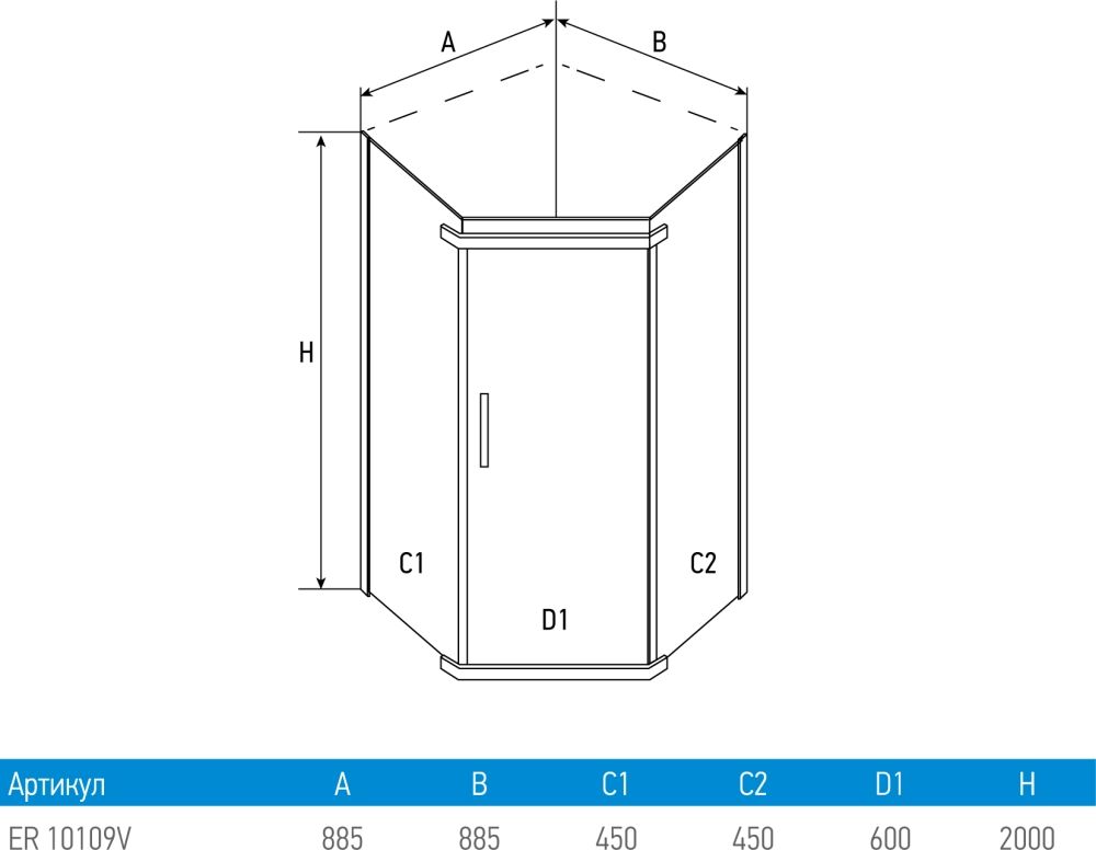 Erlit Comfort ER10109V-C1 90x90x200 Душевой уголок купить