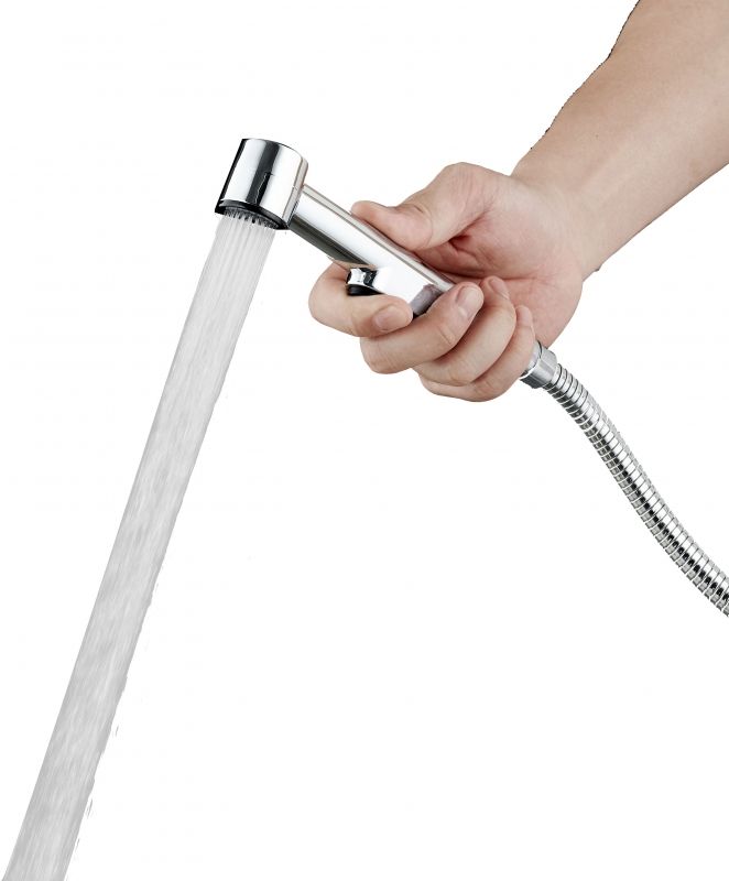 Гигиенический душ Agger AHYG01 можно использовать с любым стандартным шлангом. Он имеет надёжный кнопочный включатель воды. В комплект входит настенный держатель.