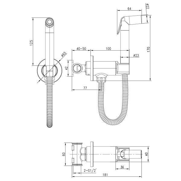 • Аксессуары в комплекте: лейка гигиенического душа с нажимным механизмом, душевой шланг 1,2 м (Turn-Free)