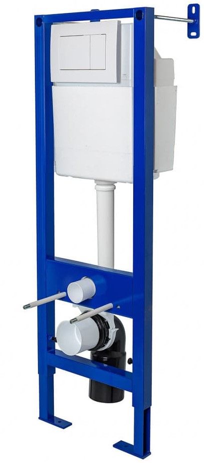 Узкая рама шириной 41 см.Металлический каркас, окрашенный антикоррозийной эмалью.Расчетная нагрузка 400кг. Объём резервуара воды 10 л с тепло- и шумоизоляцией.Подвод воды внутрь резервуара (G1/2 наружная).Объем смыва 3/6 литра с возможностью регулировки.Управление механическое, две кнопки.Межосевое расстояние под шпильки для подвеса унитаза 18 и 23 см.