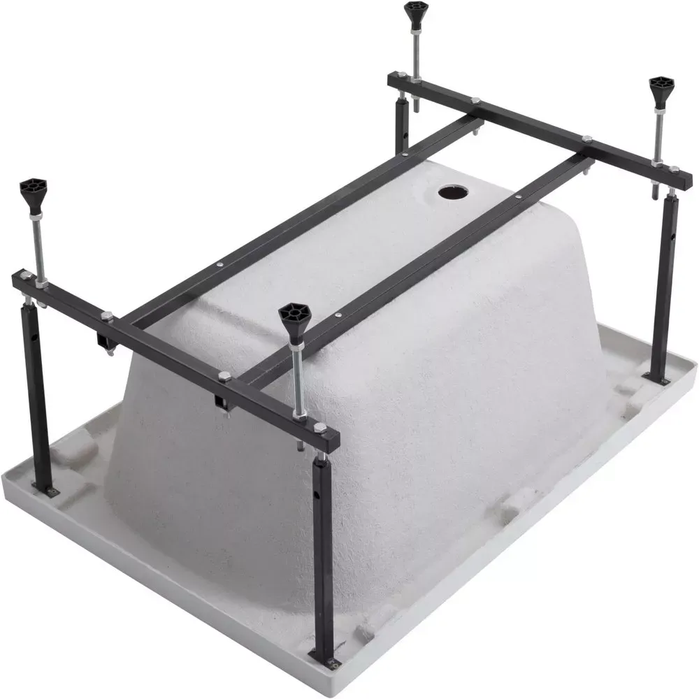 Каркас разборный для акриловой ванны Aquanet Seed 100x70 представляет собой надежную конструкцию для установки ванны. Металлические детали каркаса подвергаются трехступенчатой обработке, когда сначала профильная труба проходит абразивную зачистку на специальном станке, после чего готовые детали обрабатывают каустической содой, и, просушив, покрывают с помощью электростатического распылителя молотковой краской по металлу. Это гарантирует равномерность окрашивания и стойкость покрытия, благодаря чему каркас выглядит аккуратно и не ржавеет. Расстояние от пола до нижней поверхности дна ванны можно регулировать максимально до 10 см с помощью ножек.
