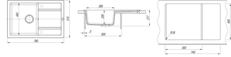 Мойка Липси 760 - это большая чаша (38 x 44 сантиметра) и длинным крылом, подойдет для любого кухонного гарнитура.