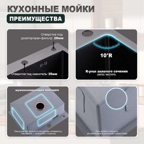 Кухонная мойка Splenka S702.6050.09, графит. Размер - 600*500*220мм. Кухонные мойки Splenka отли... Подробнее