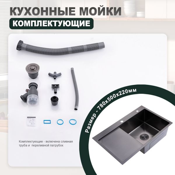 Кухонная мойка Splenka S704.7850.09, графит. Размер - 780*500*220мм. Кухонные мойки Splenka отли... Подробнее