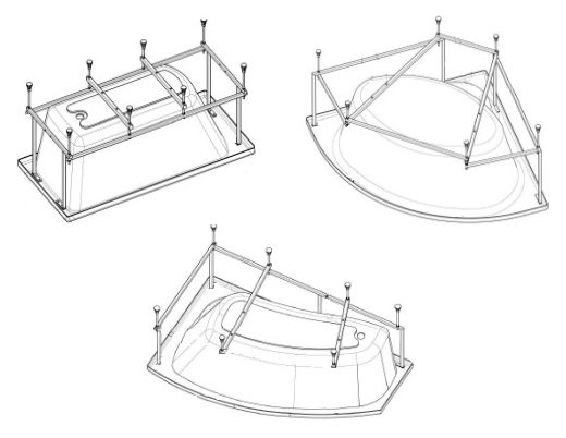 Каркас сварной для акриловой ванны имеет усовершенствованную конструкцию и позволяет надежно установить ванну. Прост в установке.