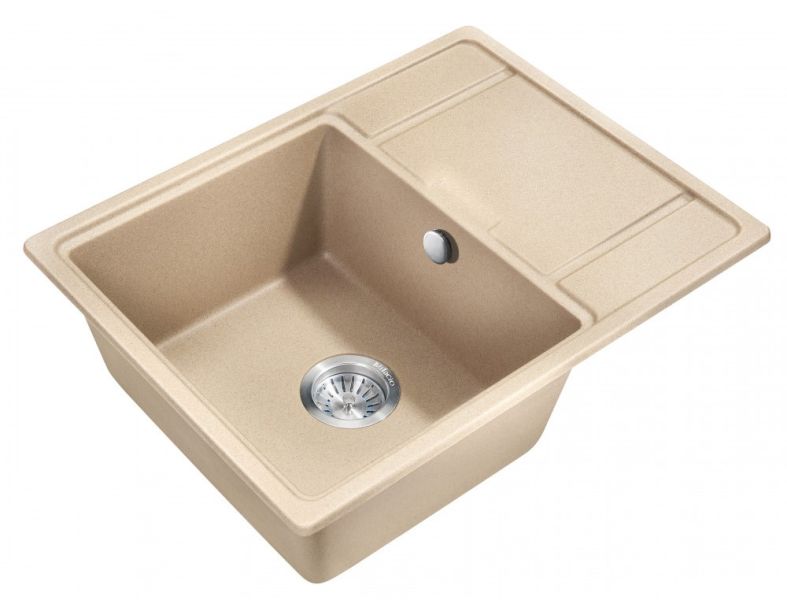 Большая врезная прямоугольная мойка для кухни из искусственного камня MILACIO Navarra 65 Cuarzo (MC.77064), выполненная в бежевом матовом цвете, идеально впишется в любой интерьер и станет ярким дизайнерским акцентом.