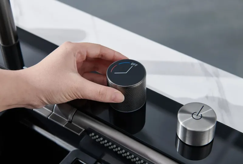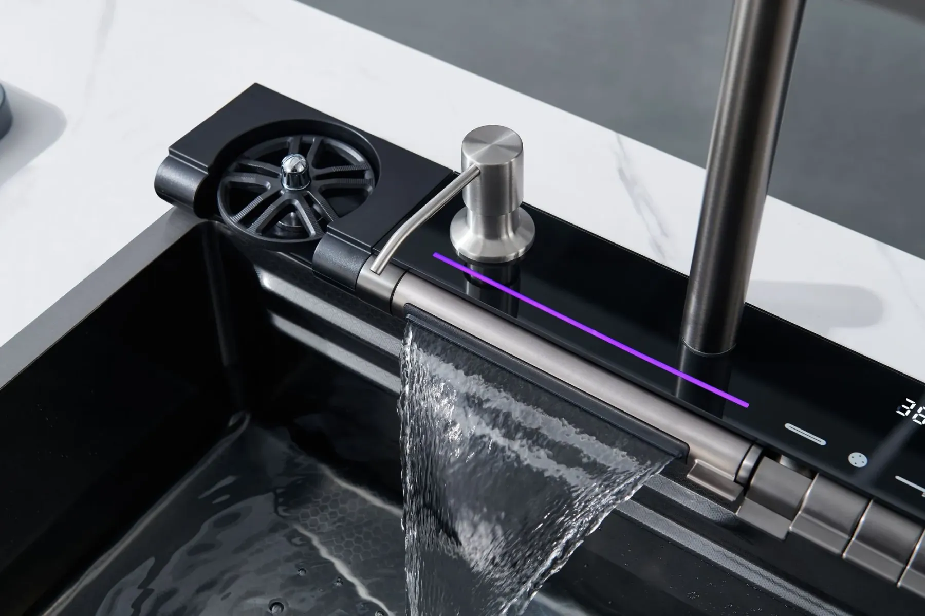 Клавишная панель переключения режимов – позволяет простым нажатием на клавишу выбрать нужный режим: каскадный водопад/ смеситель/ водопад/ мойка чашек.