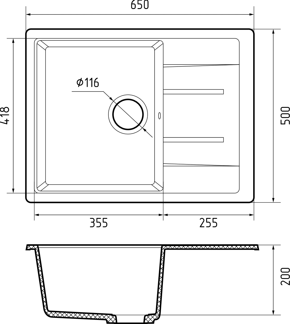 Мойка кухонная GranFest CLASSIC Q-650L графит