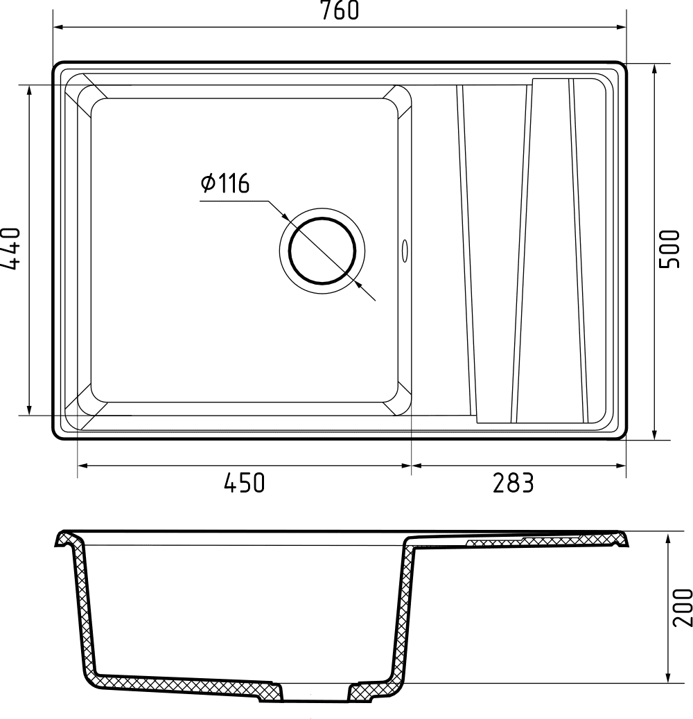 Мойка кухонная GranFest LEVEL LV-760L черный