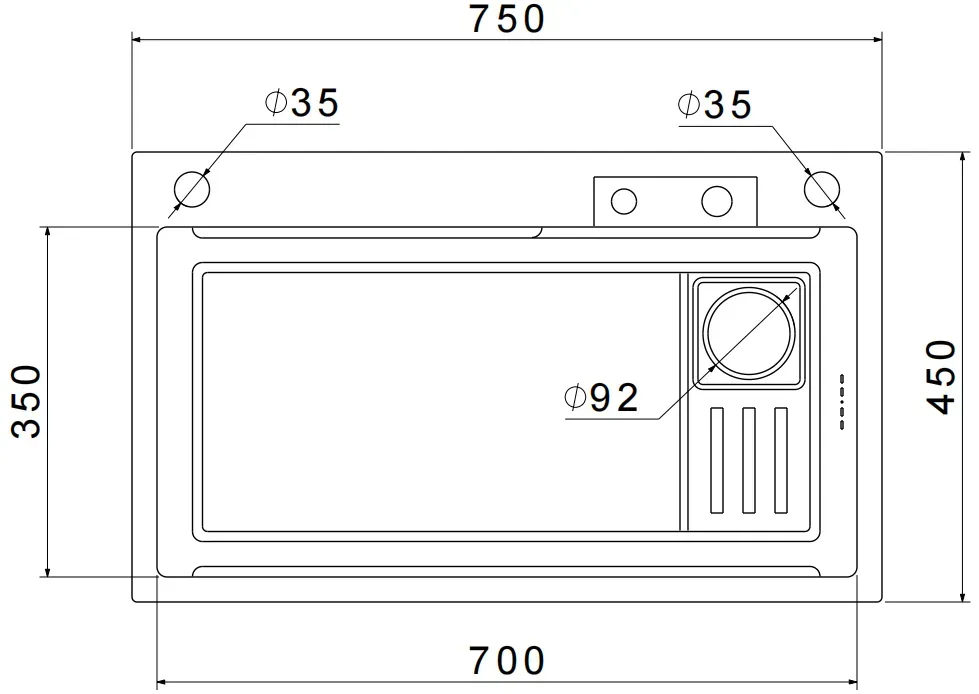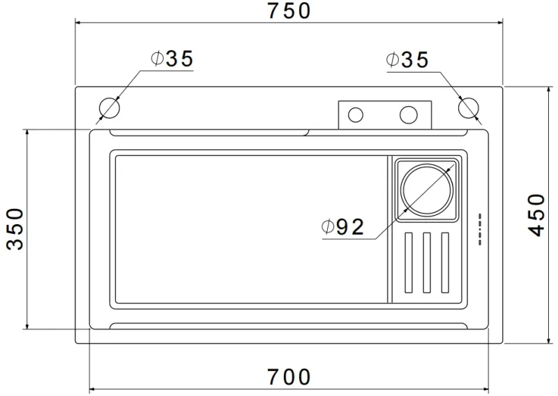 Размер чаши: 700 * 350 мм
