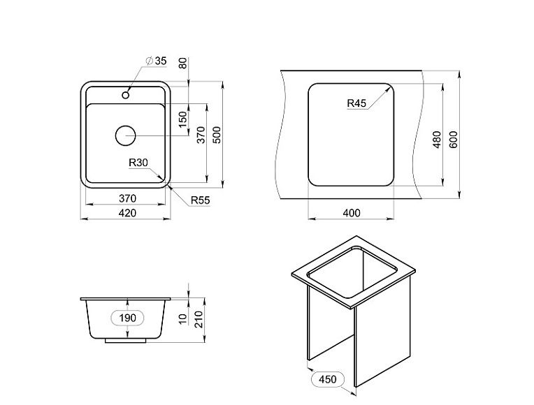 Мойка кухонная Granula Standart 4202, ЧЁРНЫЙ Подробнее