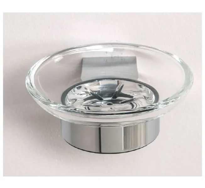 Мыльница для ванной комнаты Aquanet 5685 из прозрачного стекла круглой формы имеет очень простое с одной стороны и вместе с тем оригинальное дизайнерское решение. Предусмотренное для нее массивное крепление к стене перетекает в широкое кольцо, в котором надежно установлена прозрачная емкость для мыла словно маленькая тарелочка. Такой вариант мыльниц, когда стекло устанавливается на подставке из металла, покрытого хромом, считается самым надежным. Они изящно смотрятся, легко моются, ими удобно пользоваться.