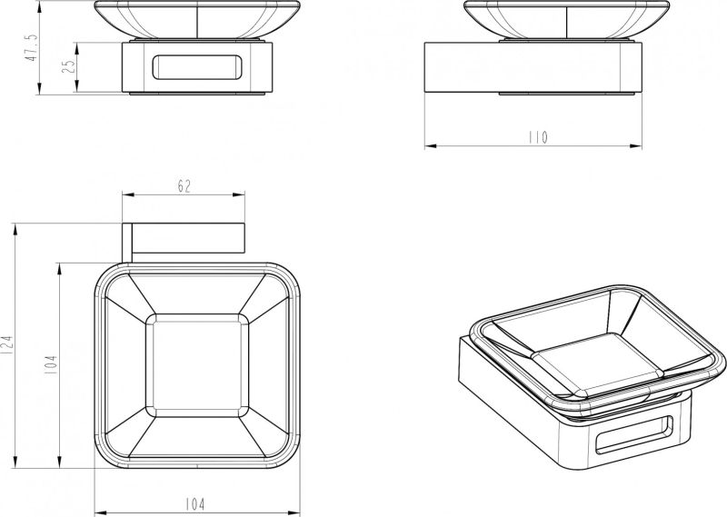 Мыльница Boheme Q 10943-CR прекрасно впишется в дизайн любой ванной комнаты, будь то компактная ванная в многоквартирном доме или большой санузел в загородном коттедже. Коллекция Q выполнена в эксклюзивном дизайнерском решении в лучших традициях современного стиля.Boheme предлагает безупречное, сочетание материалов (латунь / стекло) высокого качества, с полным отсутствием вредных для здоровья веществ. Хром, основной цвет исполнения Boheme Q, отлично подходящий большинству дизайнерских решений. Важные размеры товара: ширина 10.4 см, глубина 12.4 см, высота 4.75 см. Квадратная форма 10943-CR прослеживается во всех линиях и придает аксессуару неповторимый стиль. Мыльница размещается в самом удобном положении на стене благодаря подвесному способу установки.Италия родина бренда Boheme, вся продукция производится со строгим соблюдением всех стандартов, благодаря чему можно быть абсолютно уверенным в надежности и высоком качестве. Мыльница Boheme Q 10943-CR создаст уют и комфорт в любом дизайнерском решении, и ванная комната обретет неповторимый элемент интерьера.